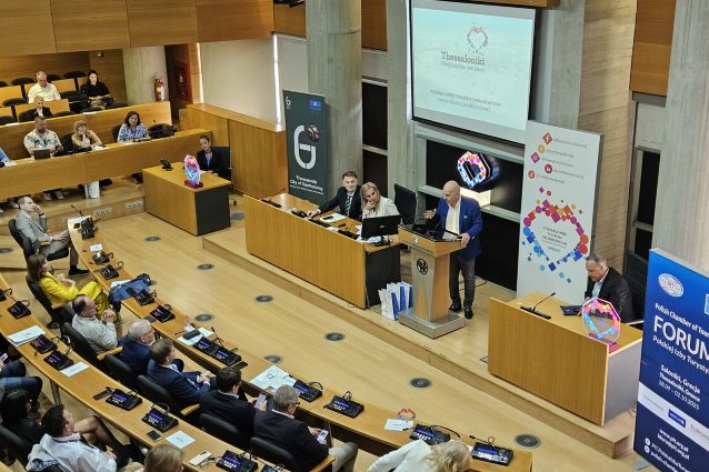 -Εκδήλωση στο Δημαρχιακό Μέγαρο Θεσσαλονίκης με καλωσόρισμα από τον Δήμαρχο και Πρόεδρο του ΟΤΘ, κ. Στέλιο Αγγελούδη.