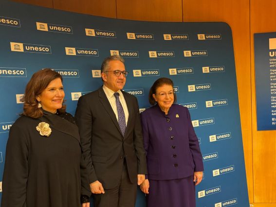 Η Υπουργός Πολιτισμού Λίνα Μενδώνη με τον Γενικό Διευθυντή της UNESCO Khaled El-Enany και την Υφυπουργό Πολιτισμού της Κύπρου Λίνα Κασσιανίδου