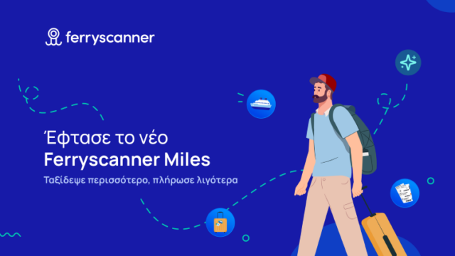 Η Ferryscanner παρουσιάζει το Ferryscanner Miles, το νέο πρόγραμμα επιβράβευσης που δίνει στους χρήστες τη δυνατότητα να συγκεντρώνουν μίλια με κάθε ολοκληρωμένο ταξίδι και να τα εξαργυρώνουν σε επόμενες κρατήσεις, απολαμβάνοντας μεγαλύτερη αξία και εξοικονόμηση σε κάθε μετακίνηση με πλοίο.
